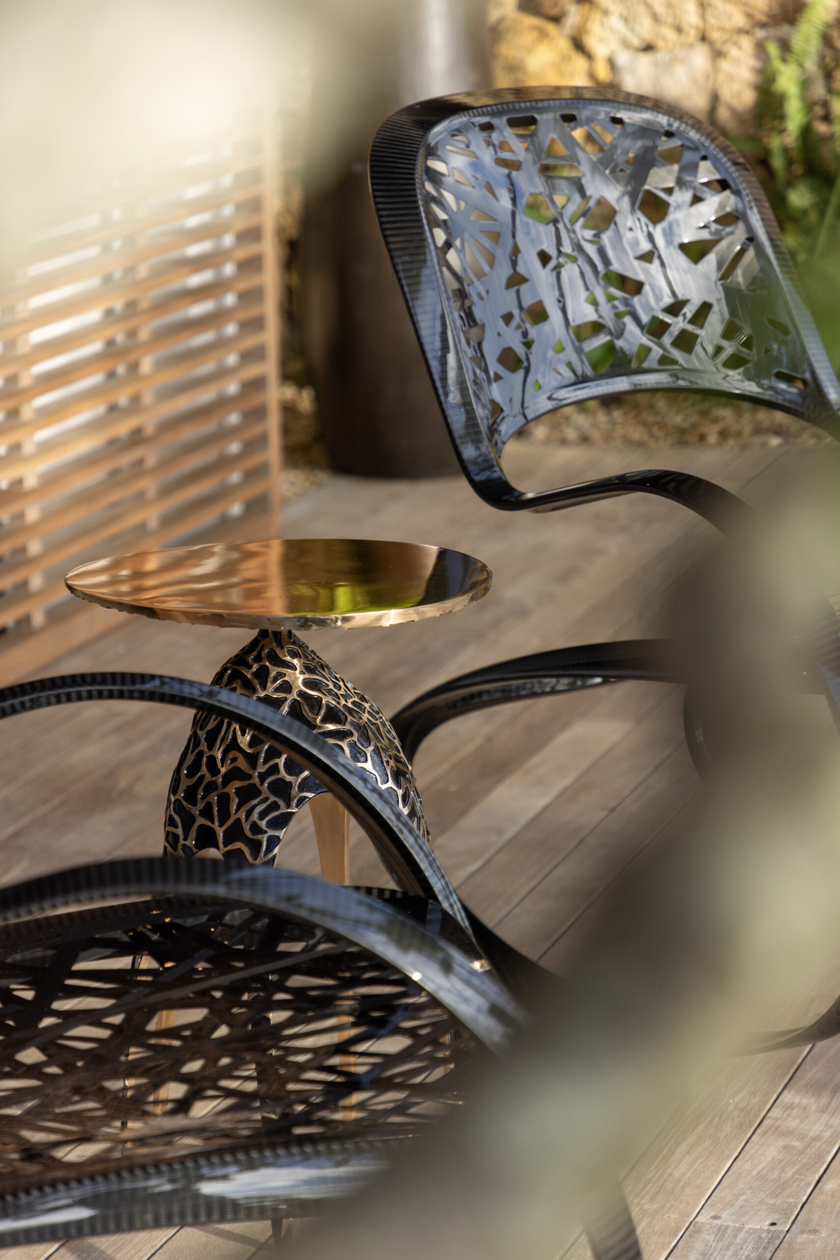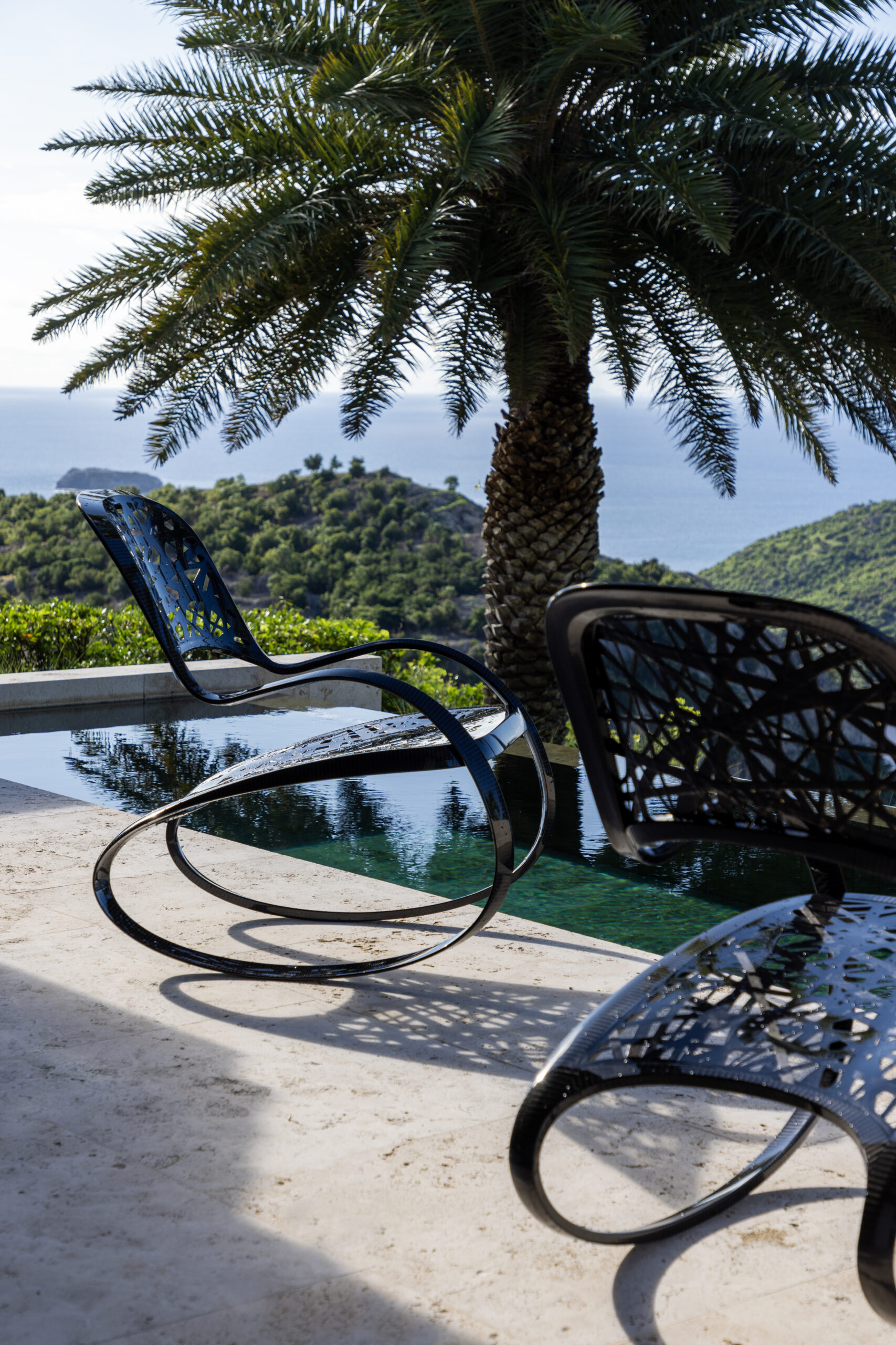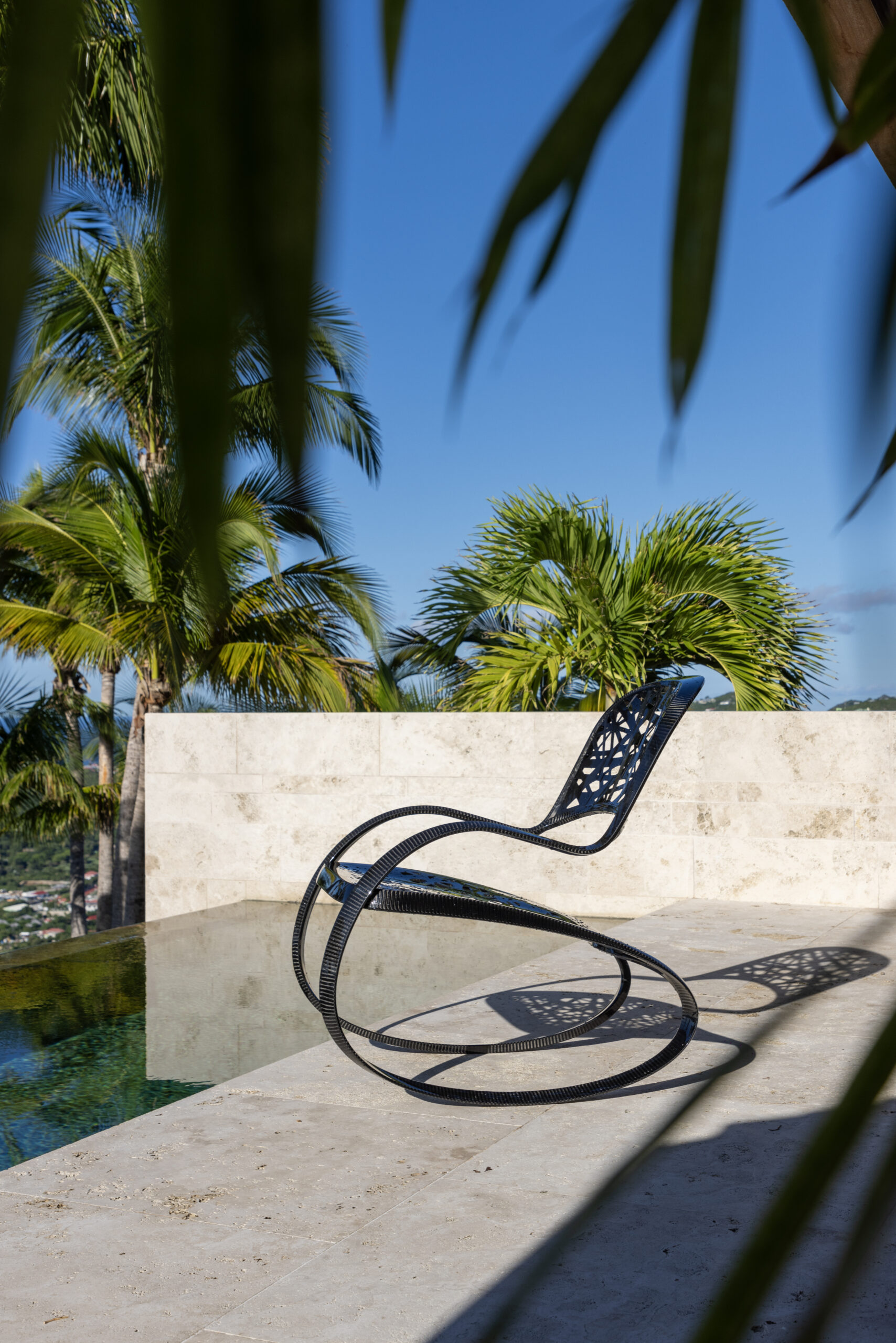 « Le rocking-chair est une pièce emblématique de ma jeunesse. C’était donc une évidence qu’il me fallait en dessiner un, selon mon esthétique. Toujours sur le principe de la réécriture de l’objet, je suis partie sur le principe du trait de calligraphie continu et tout en courbe pour obtenir un ruban noir